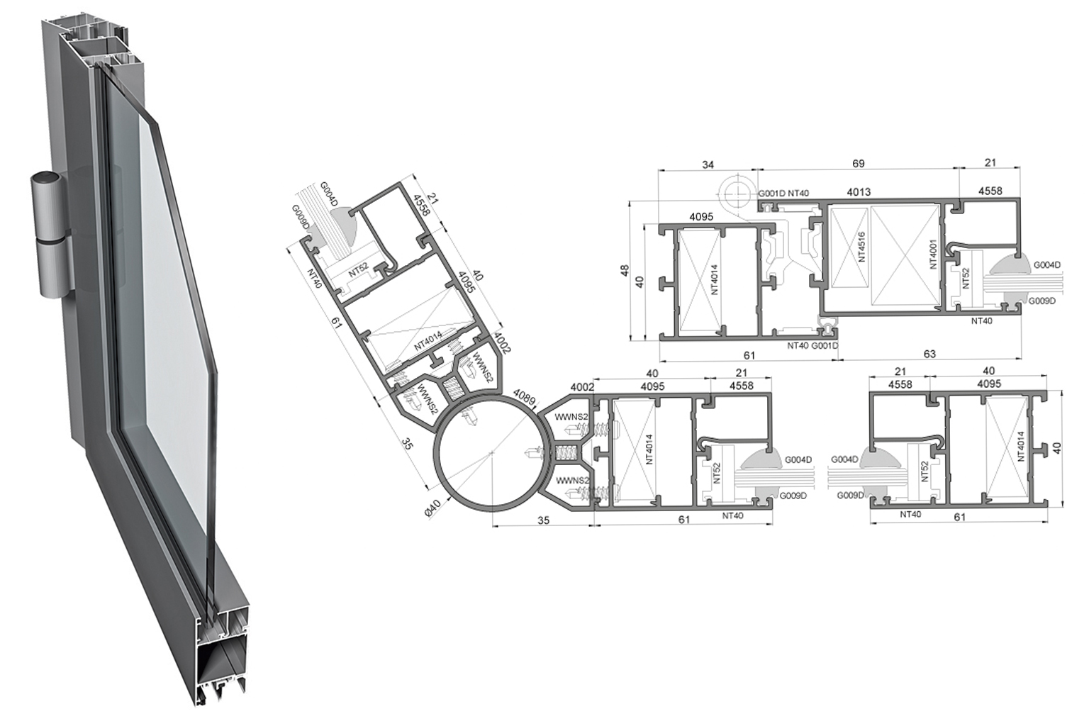 – możliwość tworzenia wielu wariantów okien np. rozwierano-uchylne, otwierane na zewnątrz, ukryte skrzydło, obrotowe itp.