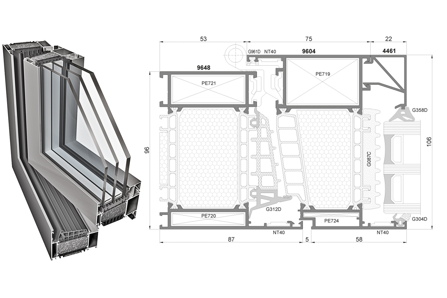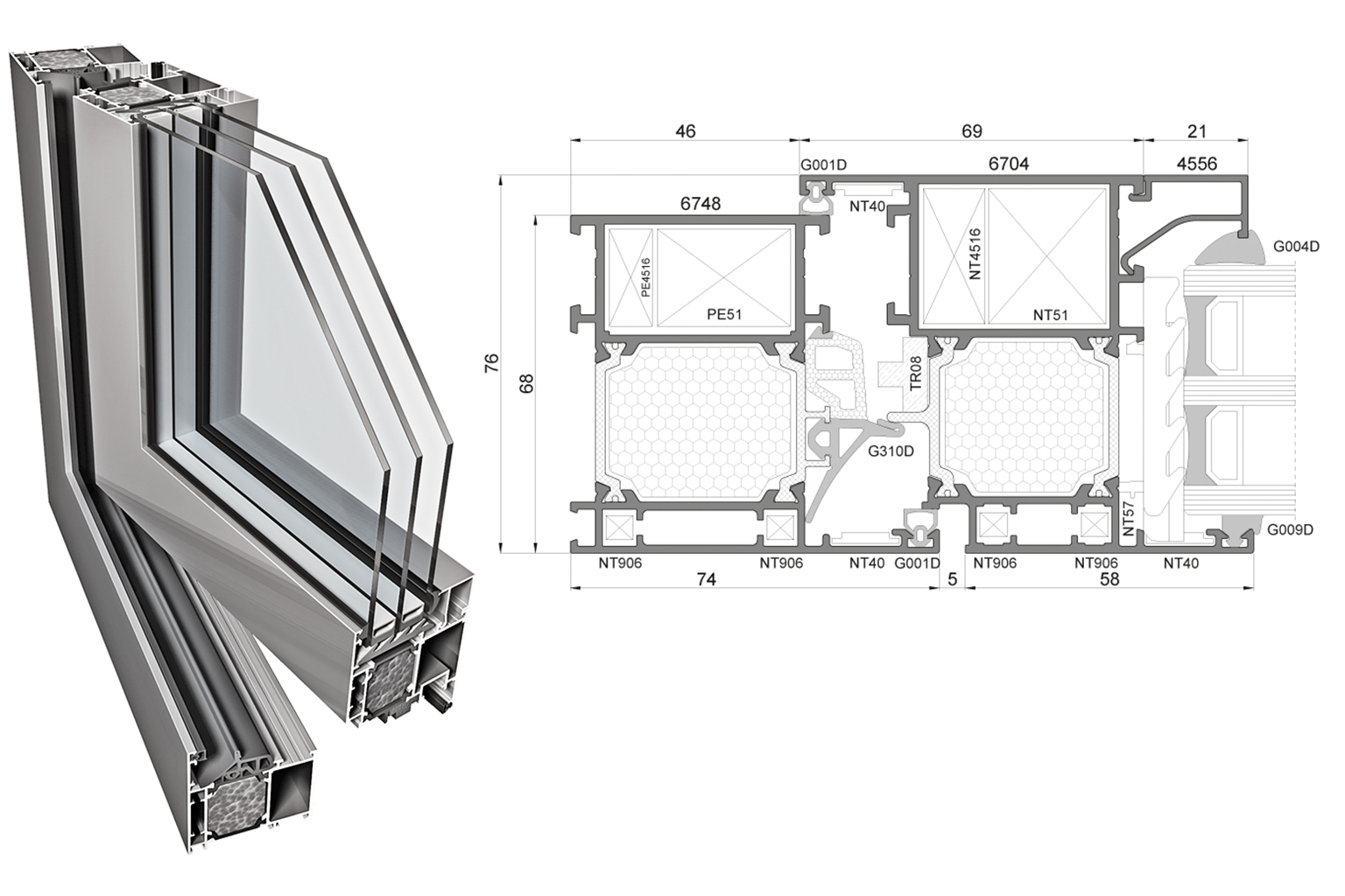 System okienny spełniający najwyższe wymagania dotyczące izolacyjności termicznej – przeznaczony do konstrukcji stosowanych w budynkach energooszczędnych i pasywnych ( Uw < 0,8 W/m2K).