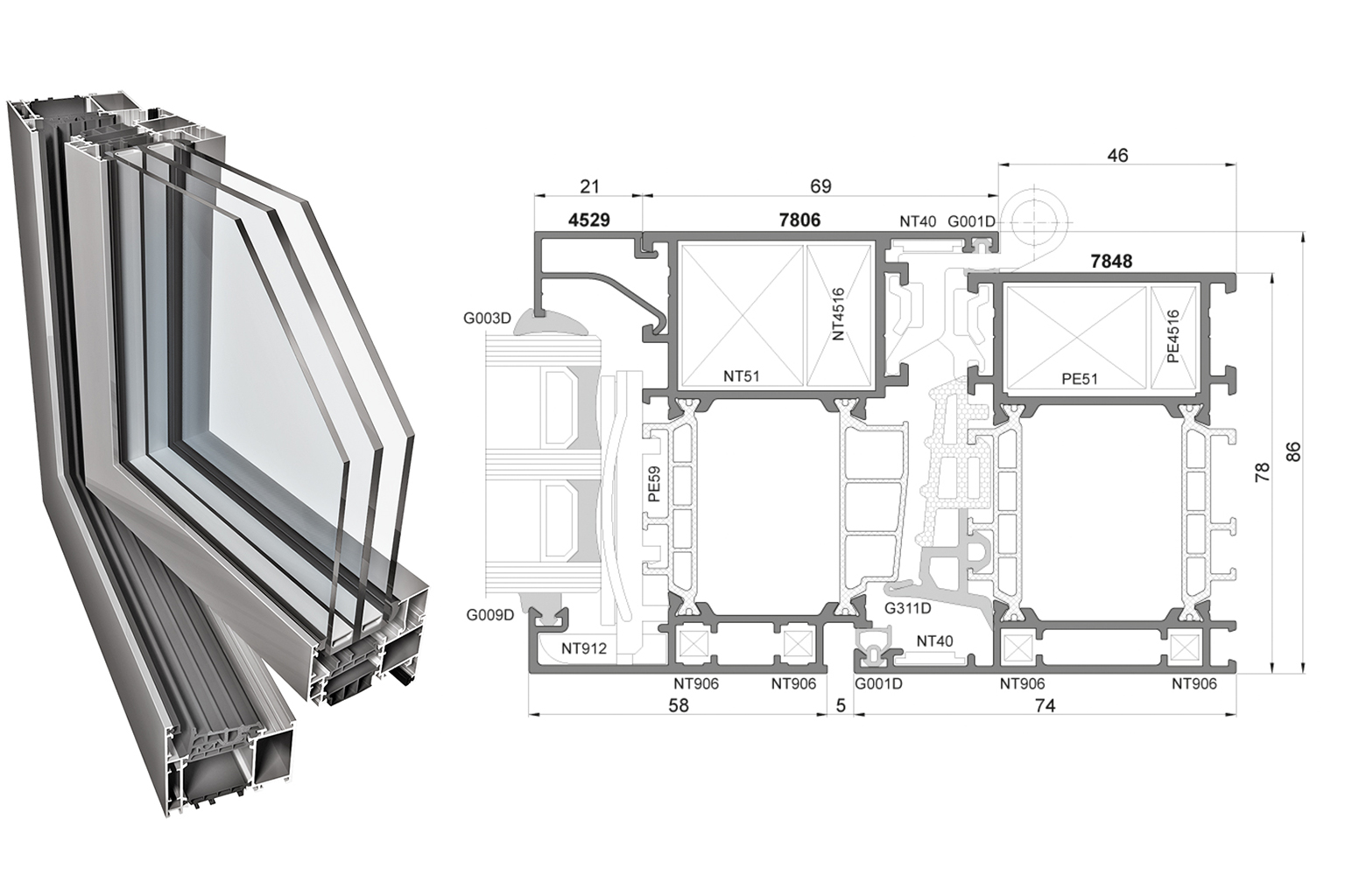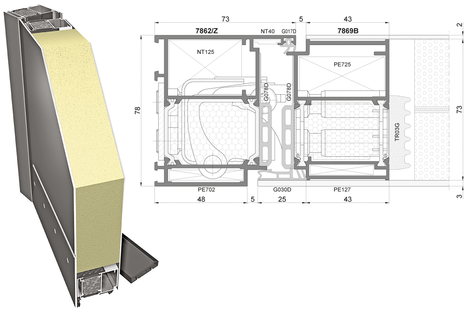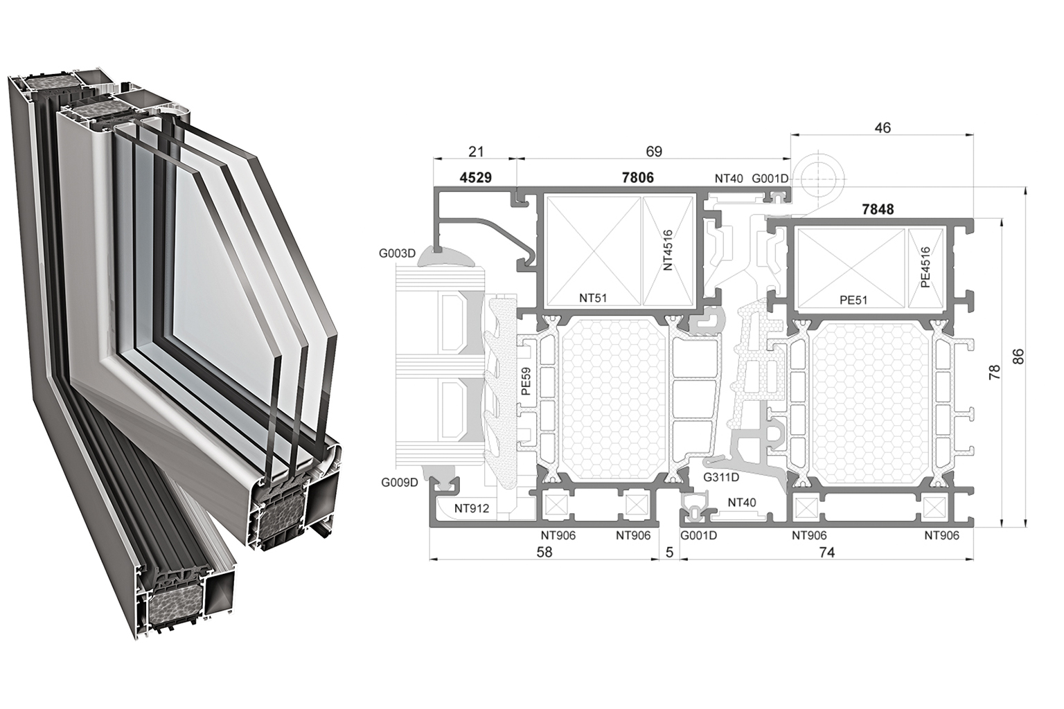 Wariant systemu PE78N przeznaczony do stosowania w konstrukcjach o szczególnie wysokich wymaganiach izolacyjności termicznej.