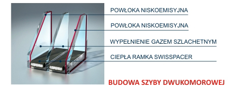 Im niższa jest wartość współczynnika przenikania ciepła szyby „U”, tym lepiej okno chroni przed stratami ciepła. Jednostką współczynnika przenikania ciepła jest W/(m2 *K).