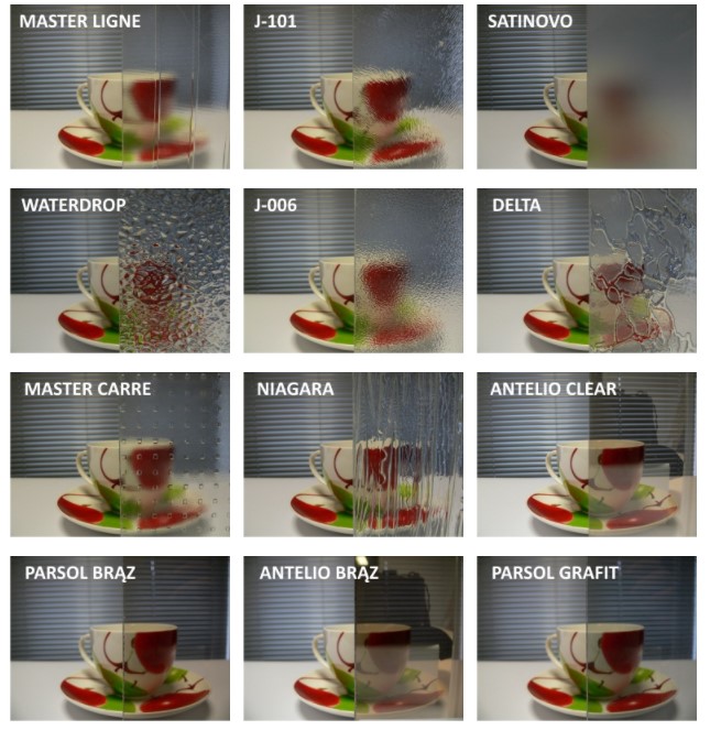 Walory estetyczne – Szkło ornamentowe przepuszcza światło, subtelnie je przy tym rozpraszając, dzięki czemu harmonijnie współgra z każdym stylem wystroju wnętrz, zarówno klasycznym, jak i nowoczesnym.